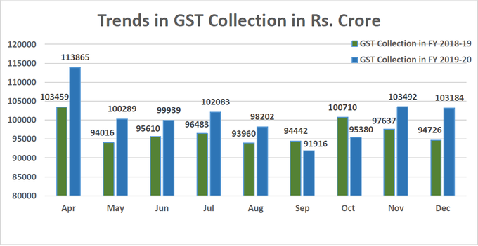 Jan 04,2020{"en":"Gross GST revenue collected in month of Dec, 2019"}